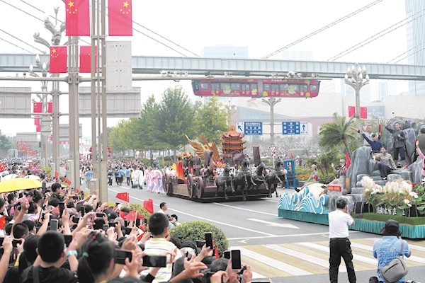 浮子之后,演员们猛烈地跳舞了脚步。他们舞蹈传统舞蹈,例如广东王,安赛腰鼓,香南藏族歌剧和新疆十二个穆卡姆。 Chu Feng Dance,例如Chu Dance“ Feng Dance Chutian”,Tujia Dance“ Zilan Kapu”,Shennongjia Bang Bang Drum和Zhiyinhao之类的舞蹈。